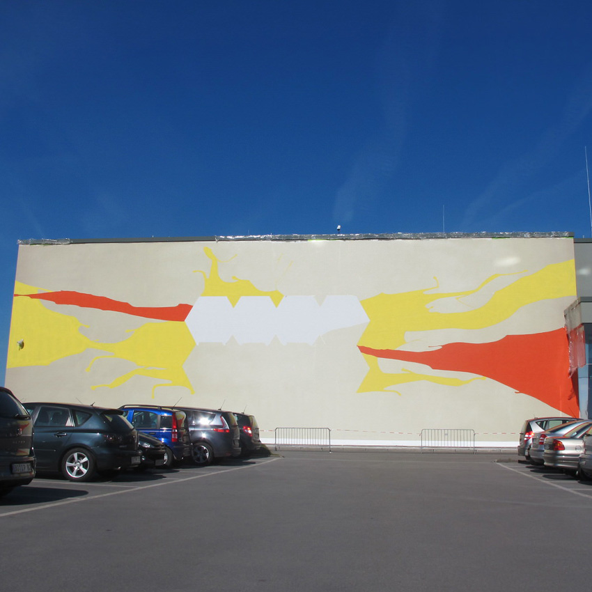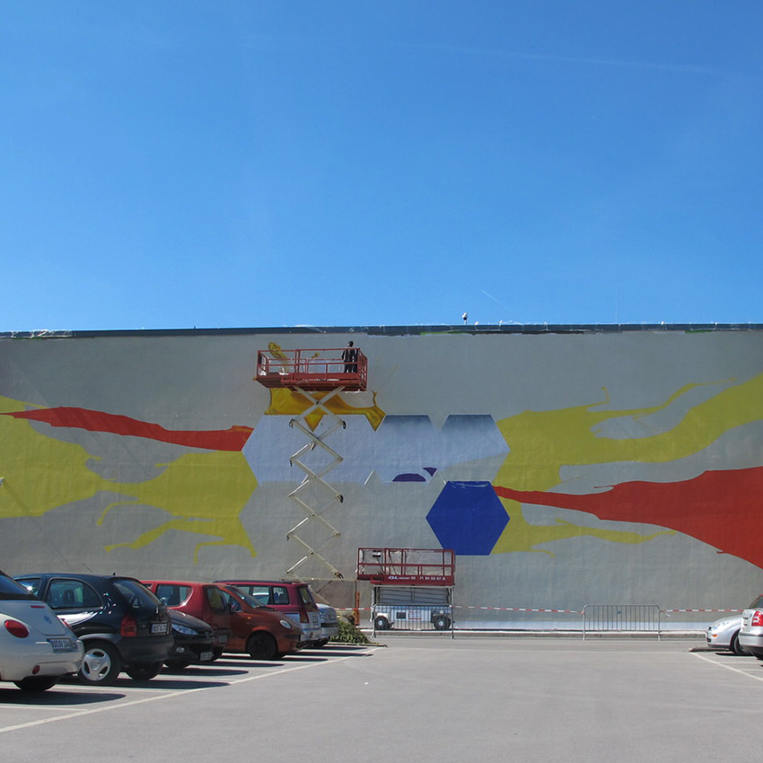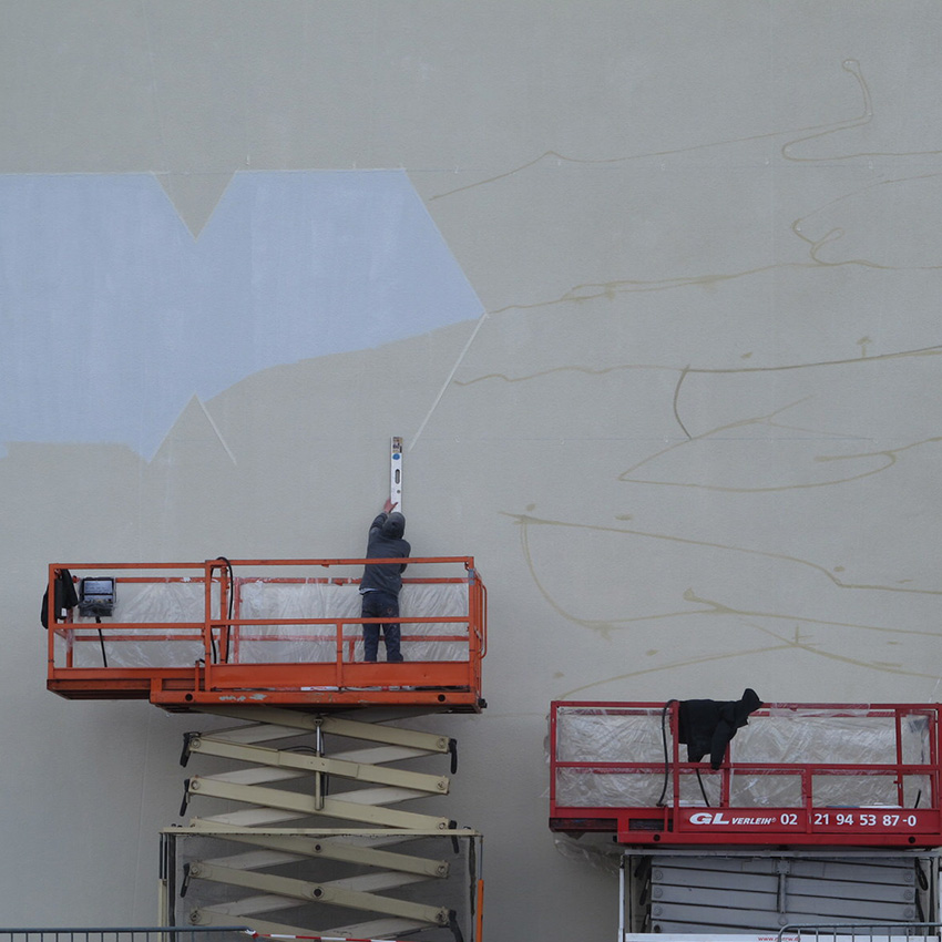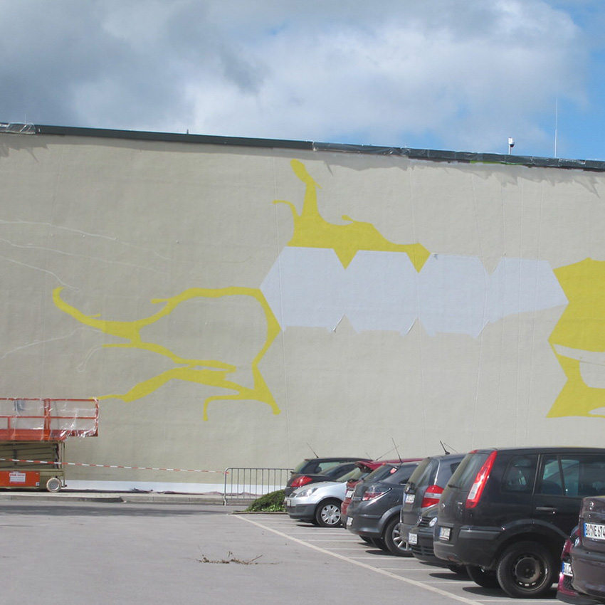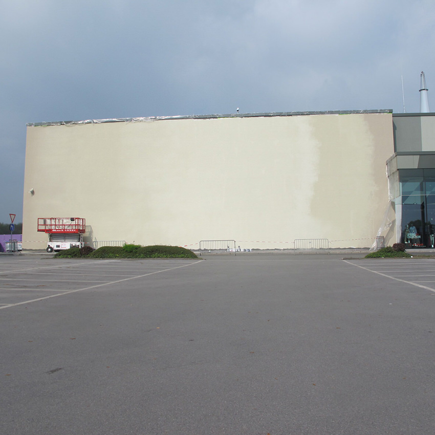 Temporäre Fassadenmalerei als Werbemaßnahme, Arbeitszeit vor Ort inkl. Grundierung 8 Tage